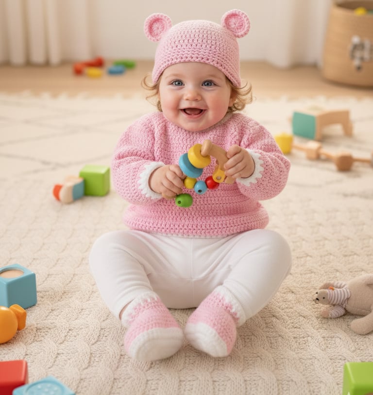 Gentle, colourful crochet pieces made for little ones